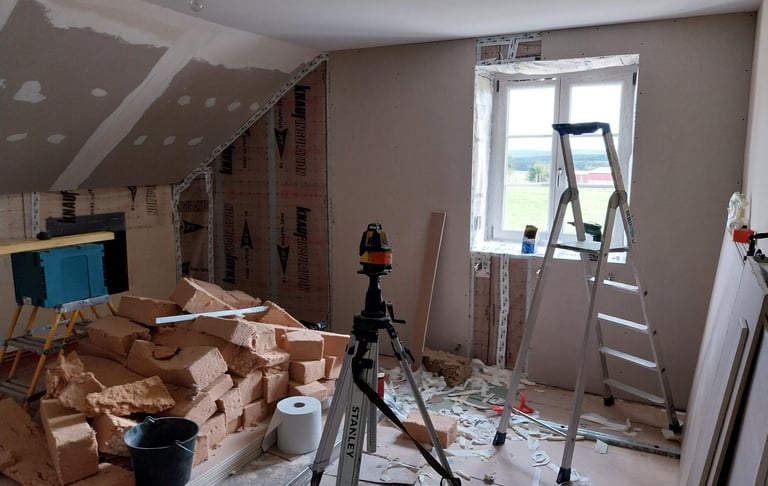 Afin de pouvoir accueillir les visiteurs dans des conditions optimales et pour mener à bien notre projet de gîte, il a s'agit d'entamer un certain nombre de travaux, le plus gros des travaux étant les travaux énergétiques. Une façon aussi de minimiser l’impact de notre activité sur l’environnement.